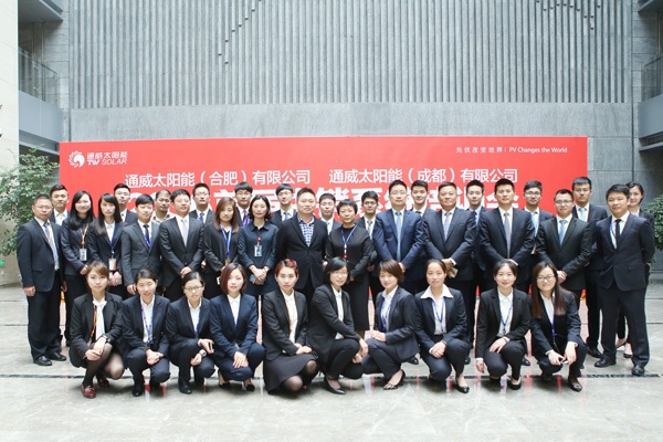 4月13日,通威太陽能(合肥、成都)有限公司在通威國(guó)際中心舉辦首屆供銷系統(tǒng)培訓(xùn)會(huì),近40名來自通威太陽能供銷系統(tǒng)的員工參加培訓(xùn)。十一屆全國(guó)政協(xié)常委、通威集團(tuán)董事局劉漢元主席出席培訓(xùn)會(huì)并作訓(xùn)前寄語,集團(tuán)總裁助理、通威太陽能(合肥、成都)有限公司董事長(zhǎng)謝毅,通威集團(tuán)人力資源部部長(zhǎng)易繼成、通威股份采購總監(jiān)衛(wèi)利容、通威太陽能(合肥)有限公司高級(jí)副總裁陳家彬出席培訓(xùn)會(huì)。